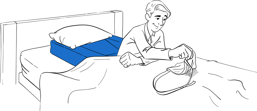 Get comfortable, remove your sling, and prepare for sleep. We recommend placing your sling within arm’s reach on top of the covers.